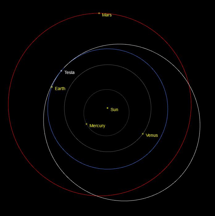 El Tesla Roadster rojo de Elon Musk.Fue lanzado al espacio el 6 de febrero de 2018 a bordo del cohete Falcon Heavy de SpaceX como carga de prueba. Con un maniquí apodado "Starman" al volante, el vehículo orbita el Sol
